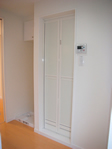 フロなしからバス・トイレ別へということで、間取りには苦労しましたが、間取りの関係で少し狭くなってしまった収納は、使い勝手の良いクローゼットタイプにすることで対応しました。また、建具を壁紙と同じホワイト系にすることにより、部屋をより広く、明るく感じるように工夫してみました。設置位置を変更したキッチンは、サイズを変えずに使い勝手の良いものに変えました。床に直置きだった洗濯機置き場には、洗濯パンを設置し、上部には吊戸棚を設けました。外壁の補修工事をしたことや雑然としていた1階共有部分も整備したことで、共同住宅に重要な第一印象も良くなりました。